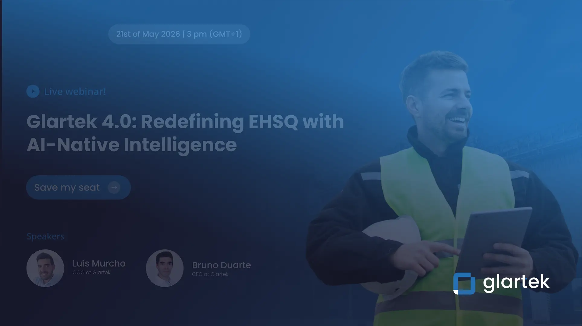 In this session, we dive into the evolution of EHSQ management. Learn how Glartek 4.0 leverages AI-native technology to drive operational efficiency and ensure seamless compliance. We will showcase new functionalities and real-world benefits of the Connected Worker approach, providing a clear path for organizations looking to modernize their safety and performance standards. Includes a live Q&A session.